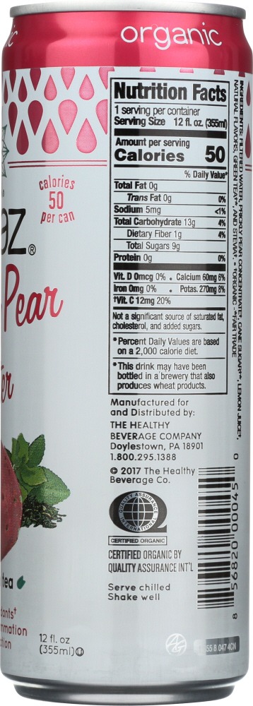 Prickly pear cactus water from Mexico blended with certified organic, fair-trade green tea from Kenya. A light, refreshing blend of prickly pear and organic green tea.